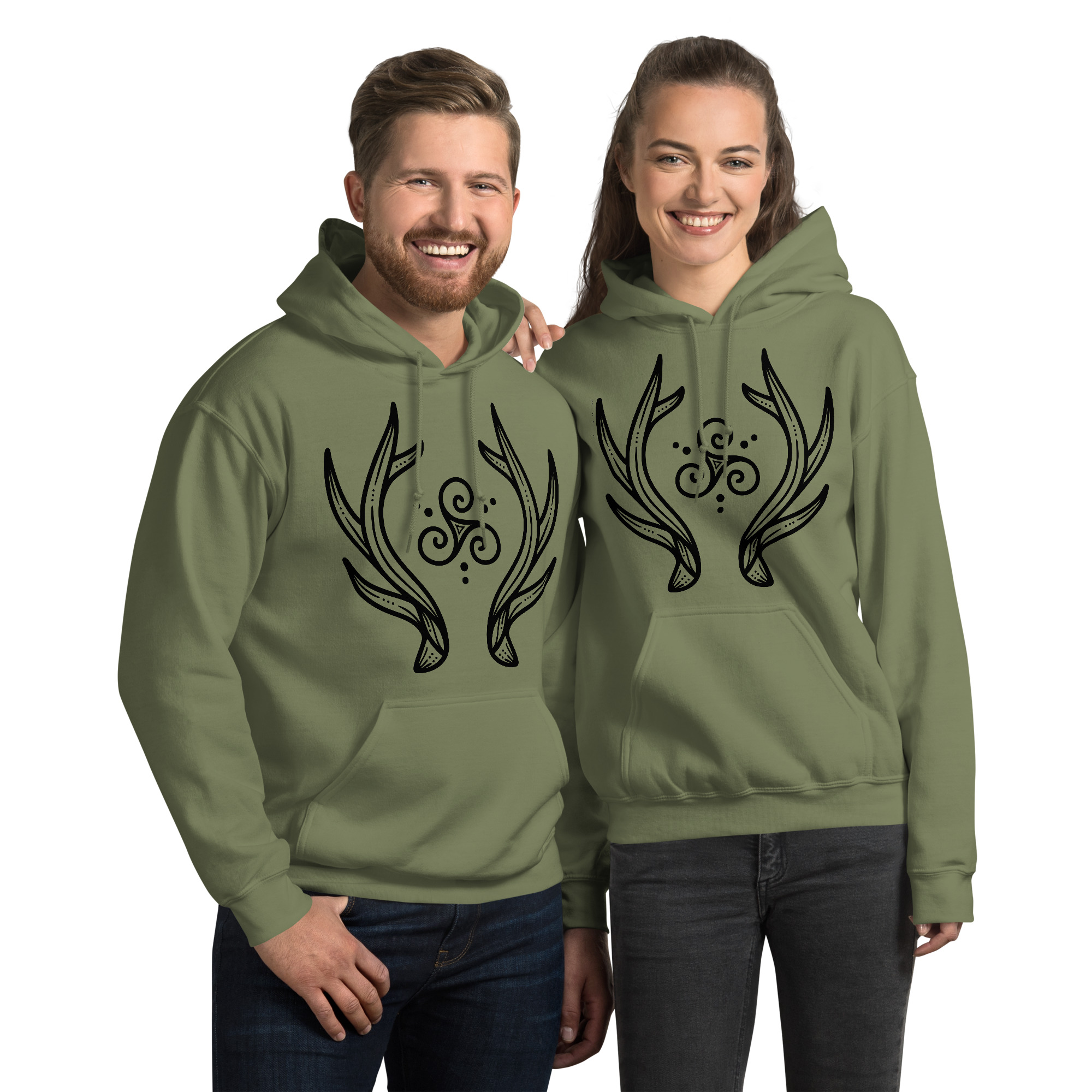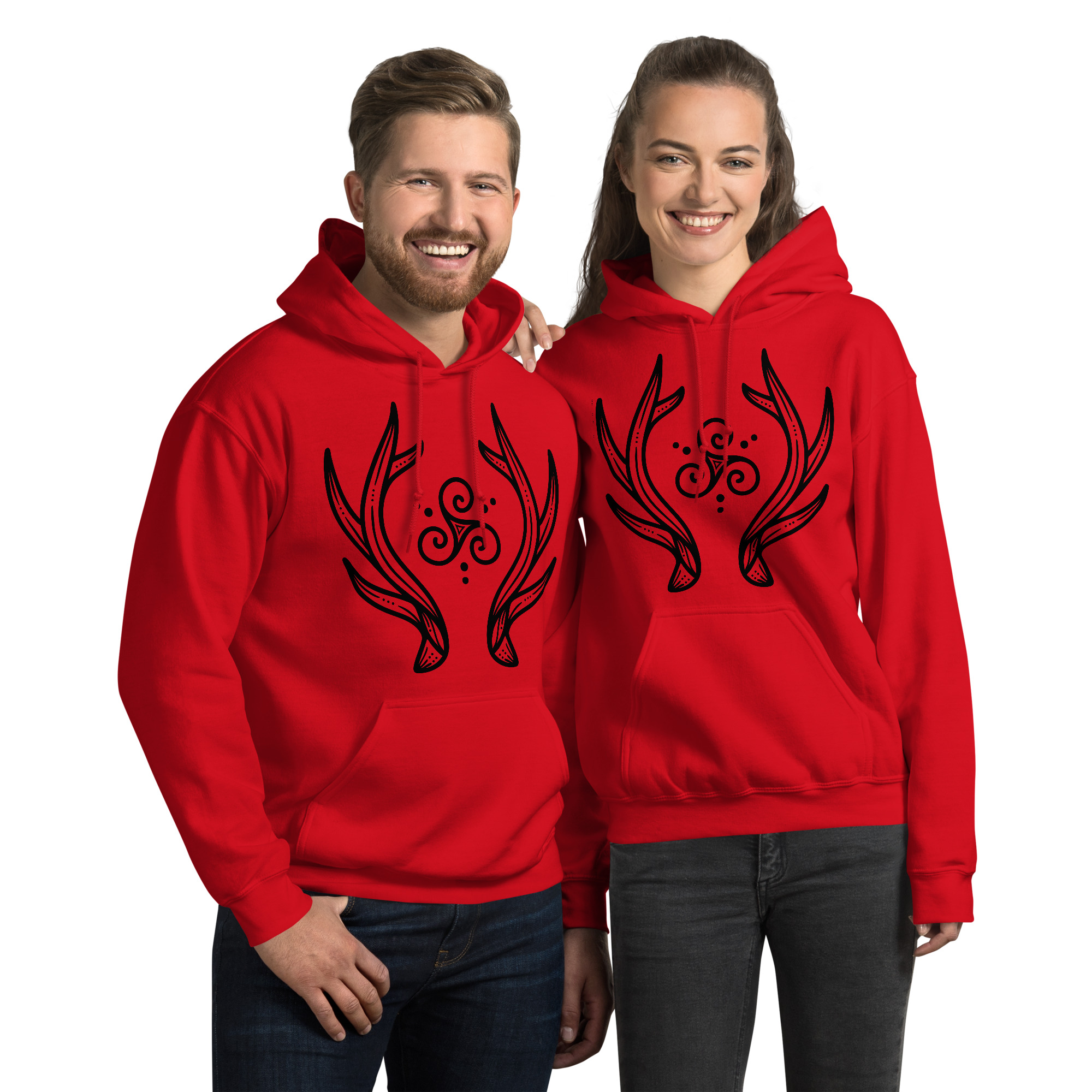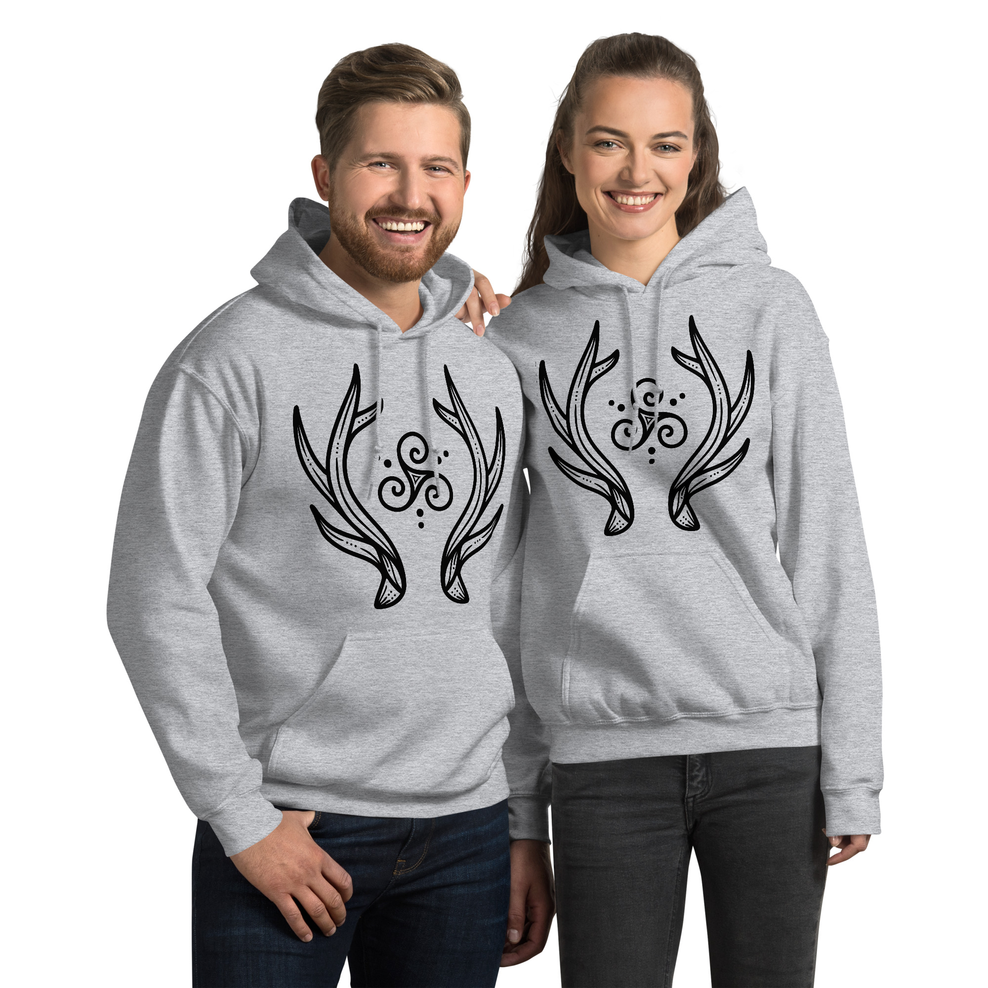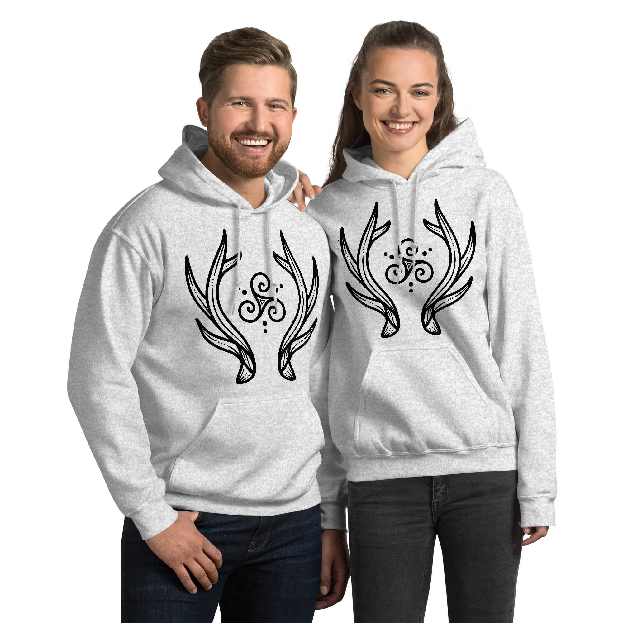 Antlers Tri-Swirl – Black Lines Unisex Hoodie